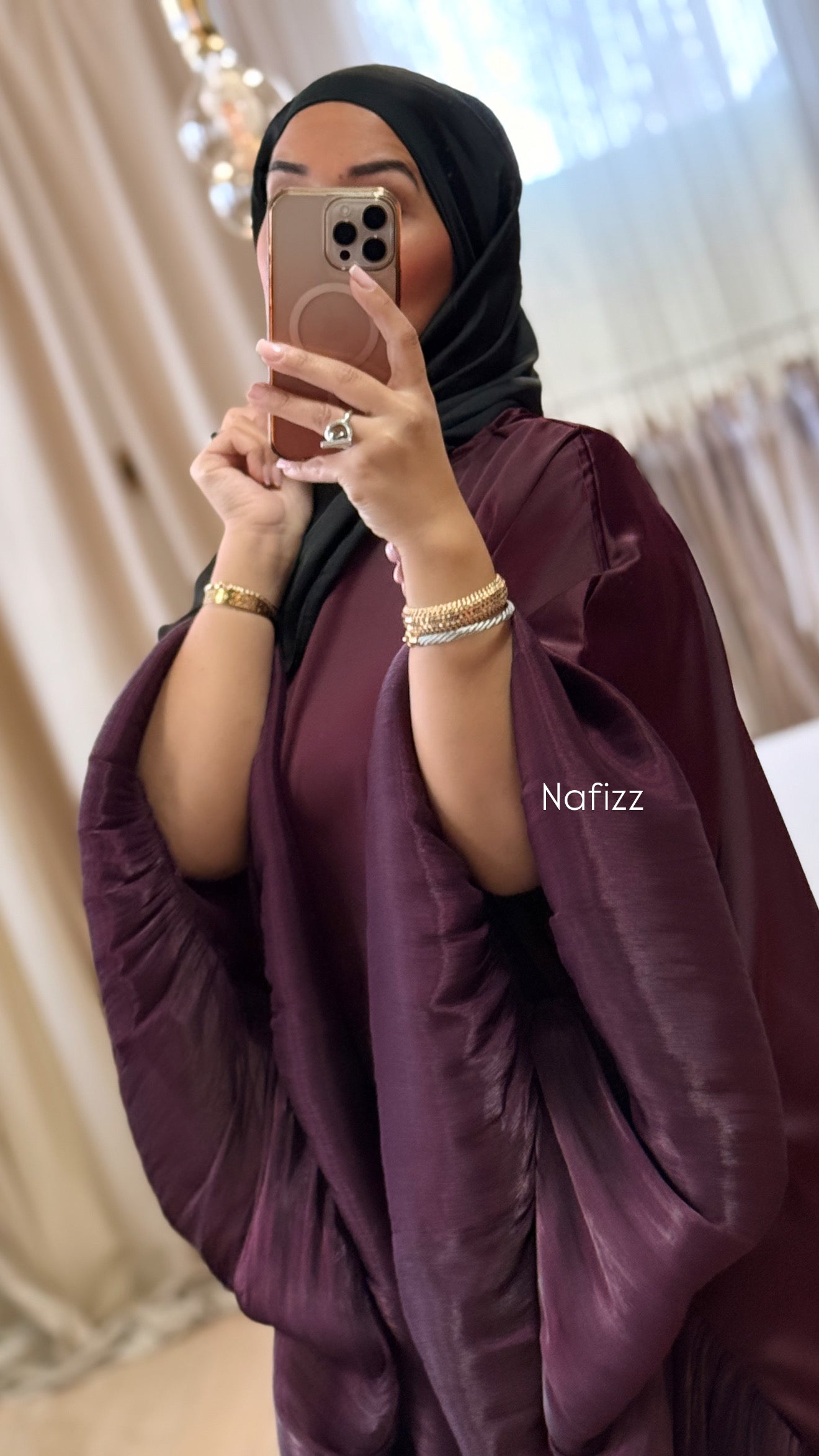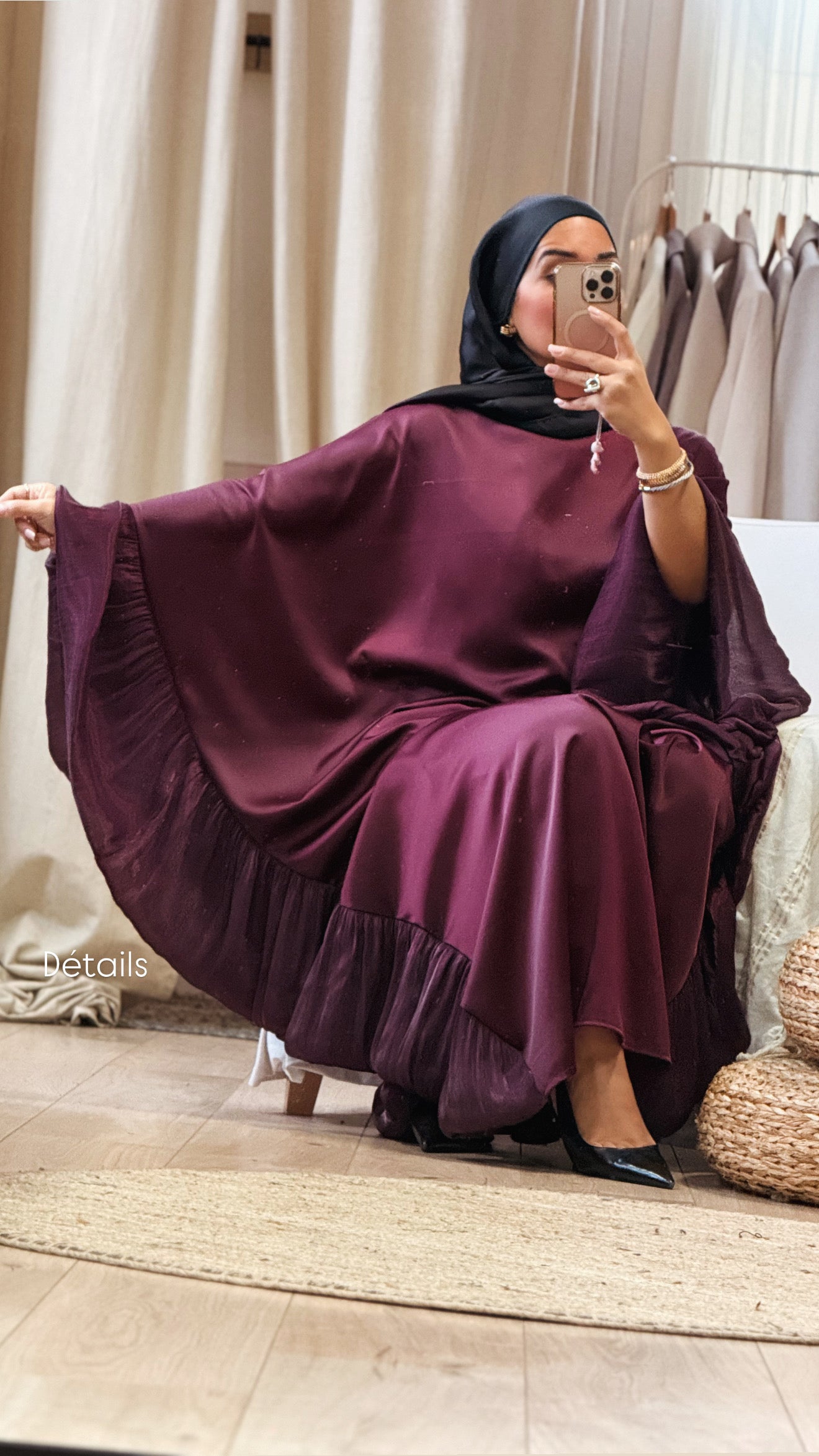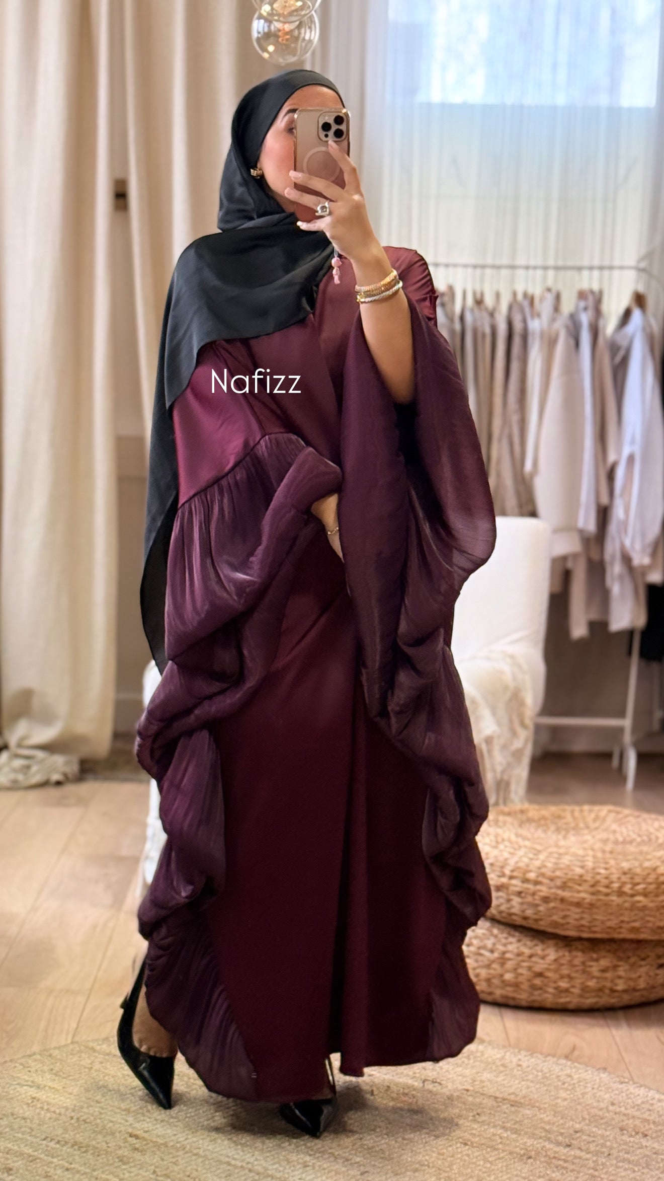 - La robe Zeyneb bordeau est conçue pour les occasions spéciales, offrant un voilage fluide qui assure une silhouette élégante. Son cordon intérieur permet un ajustement personnalisé à la taille.